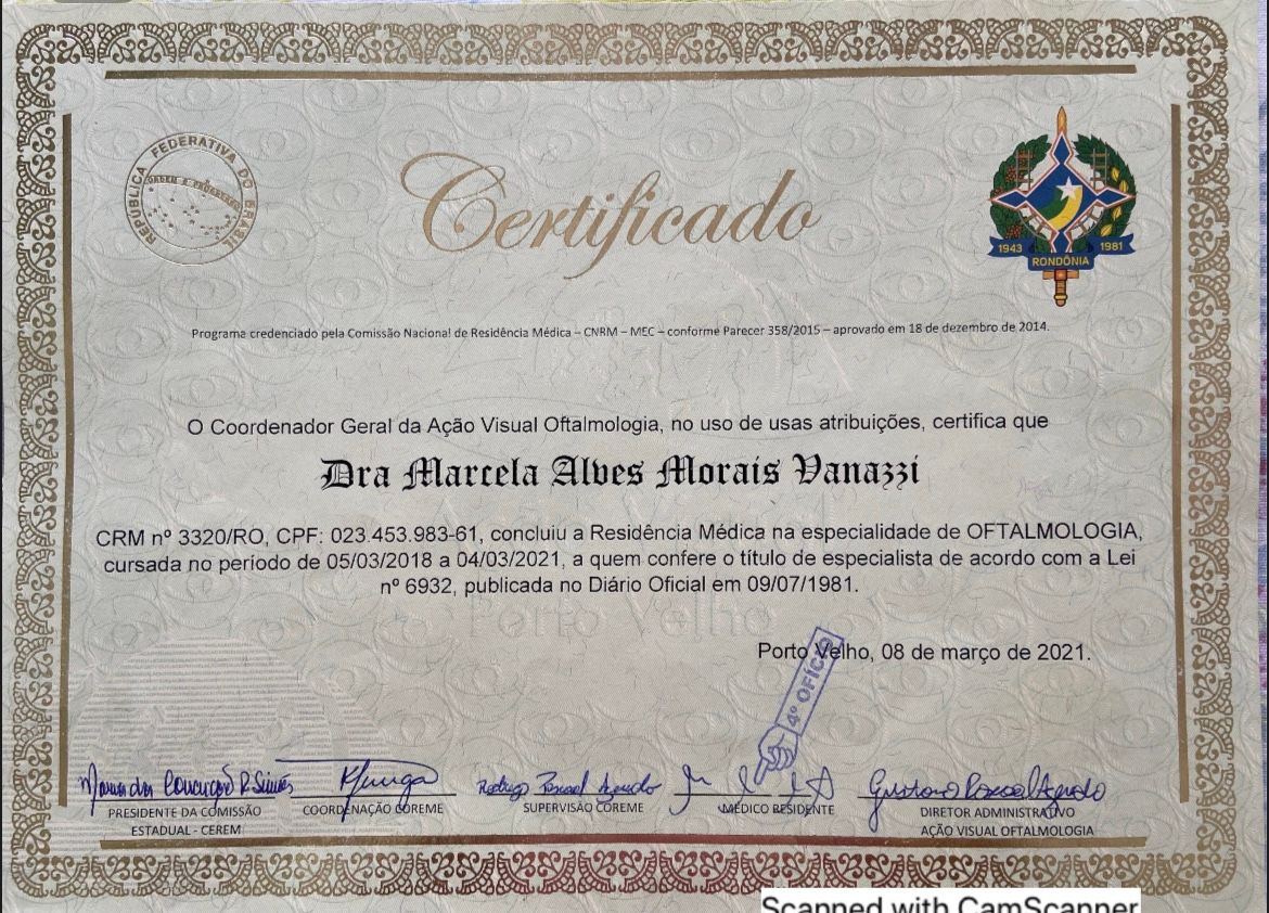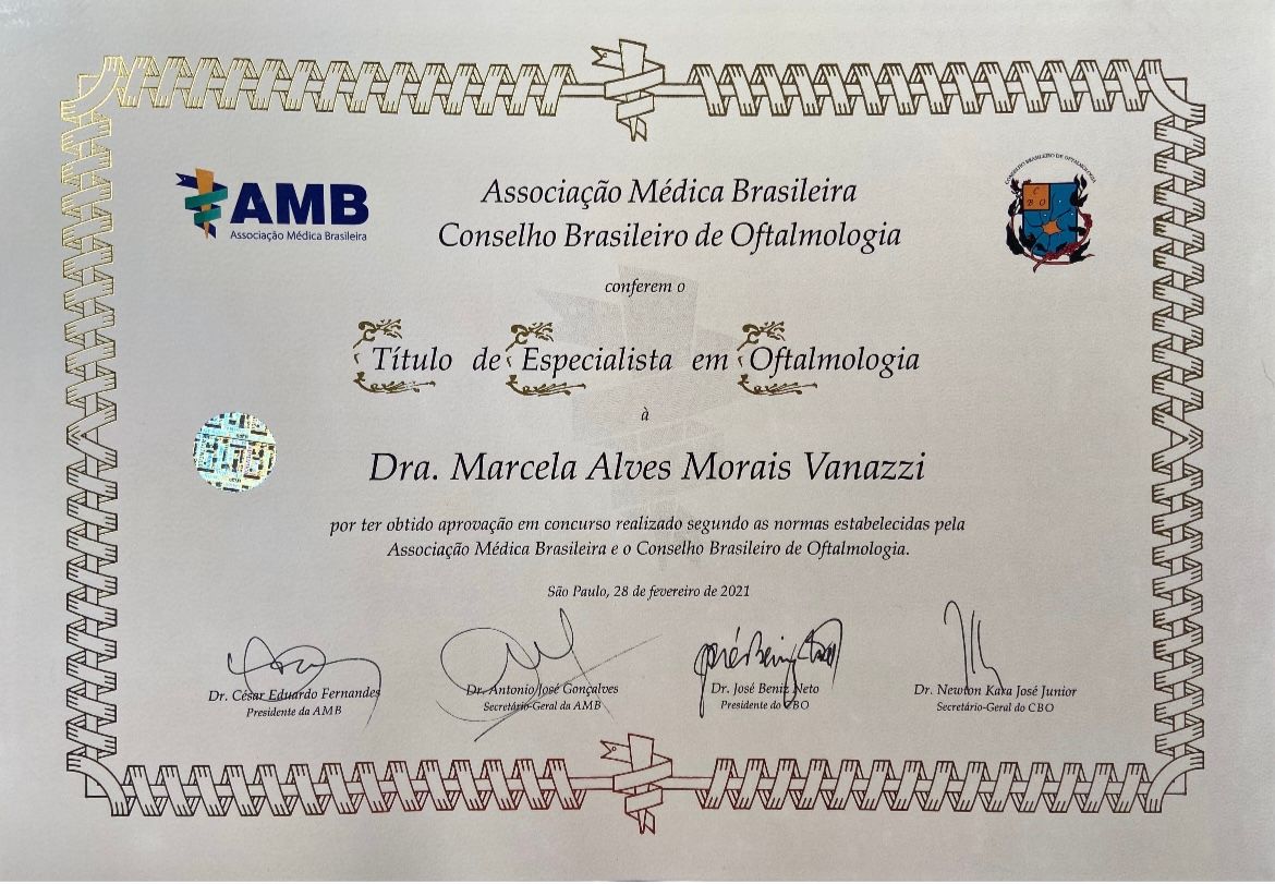 - Título de especialista pelo Conselho Brasileiro de Oftalmologia - CBO e Associação Médica Brasileira - AMB (RQE 5860-AM).