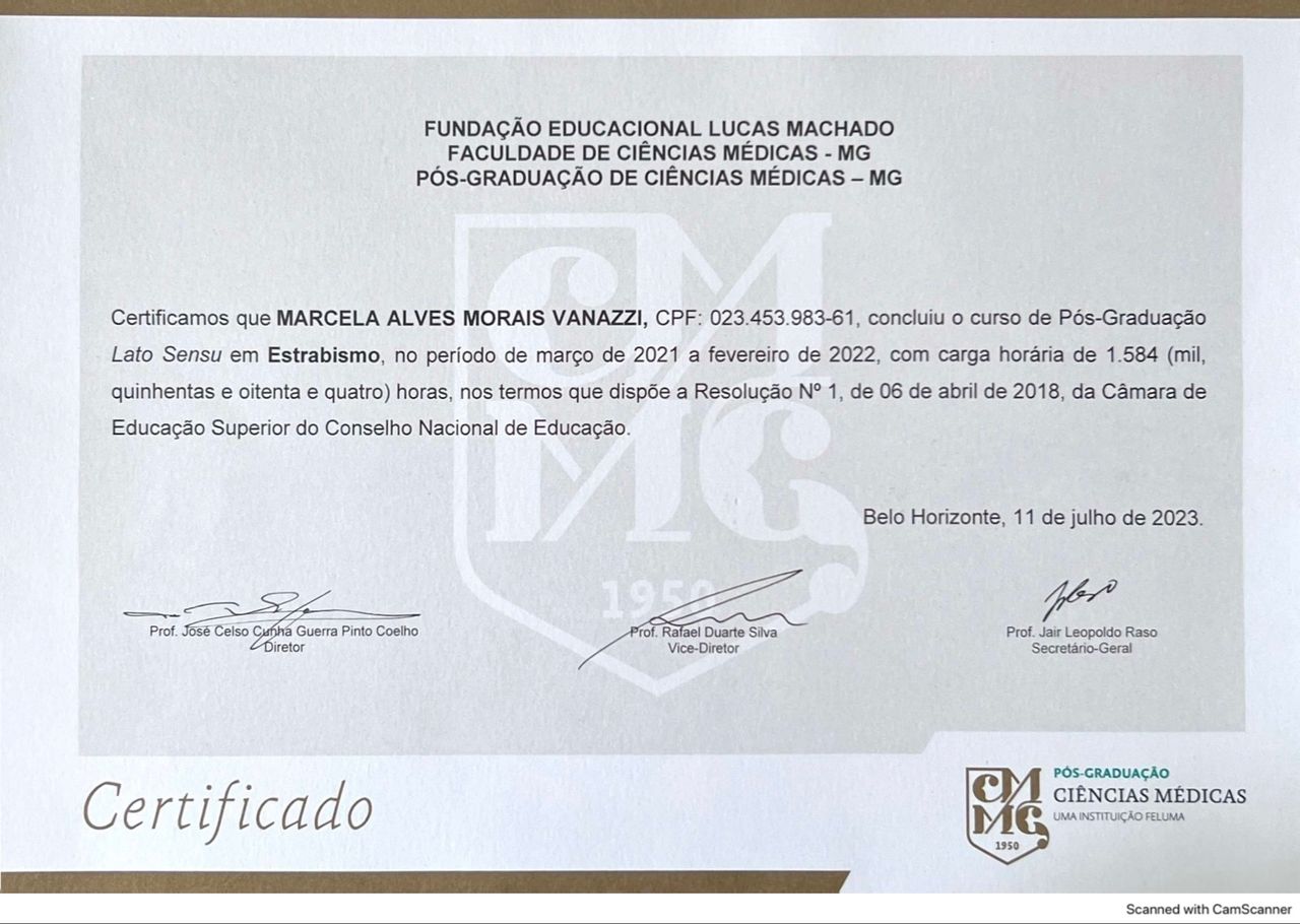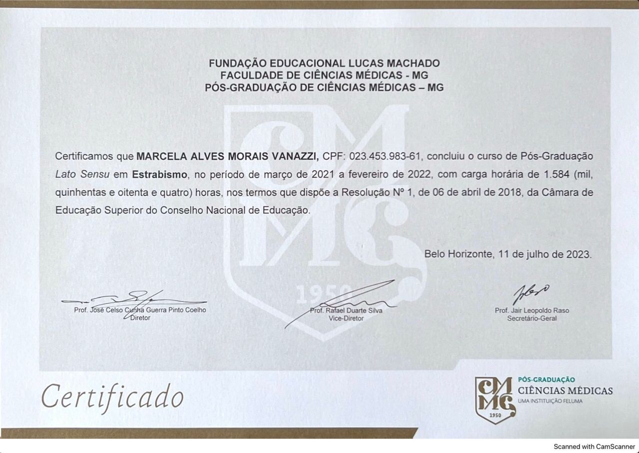 - Programa de capacitação Fellowship em Estrabismo no Instituto de Olhos Ciências Médicas - IOCM pela Pós-graduação Ciências Médicas - PGCM em Belo Horizonte-MG (2021-2022)