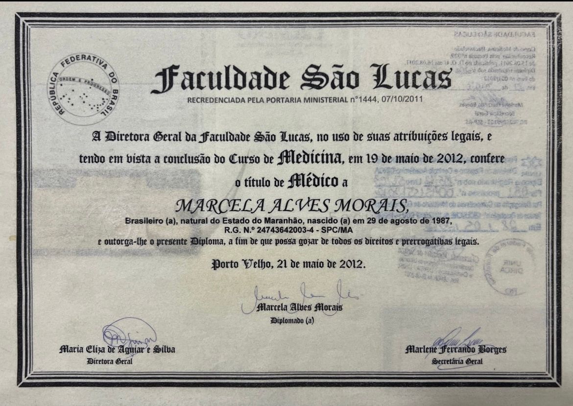 - Título de Medicina pela Faculdade São Lucas - FSL- em Porto Velho-RO com bolsa integral pelo Programa Universidade para todos - PROUNI (2006-2012)